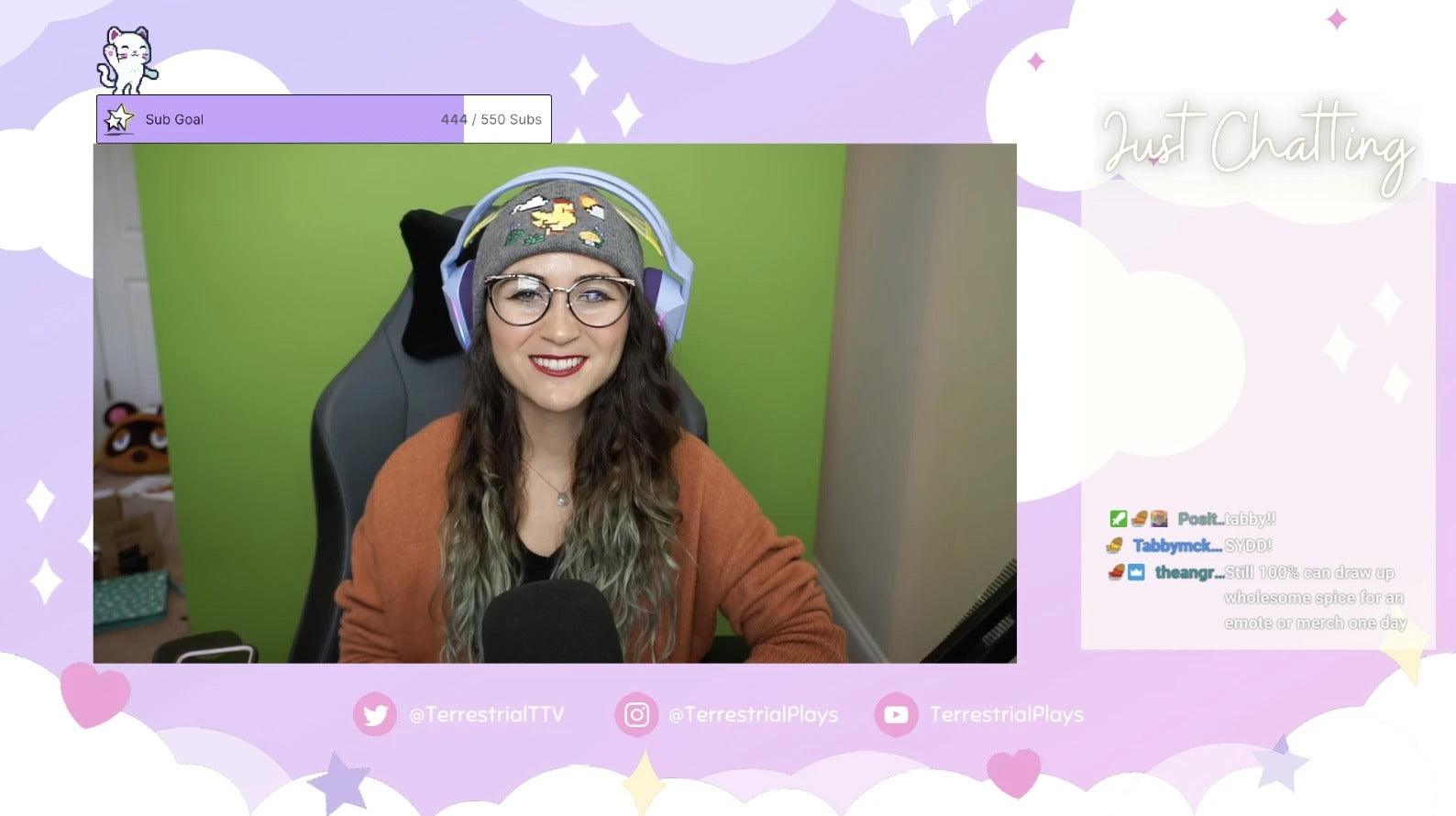 Terrestrial(チャンネル名:TerrestriaPlays)は、「どうぶつの森」や「The Sims」などのゲームを実況プレイして有名になったTwitchストリーマーです。彼女はTwitchアフィリエイトとしてフルタイムで配信を行っていますが、Twitchでおなじみの大物たちと比べるとまだ規模の小さいアカウントです。配信1回あたりの平均視聴者数は65~70人で、チャンネルのサブスクライバーは450人強です。