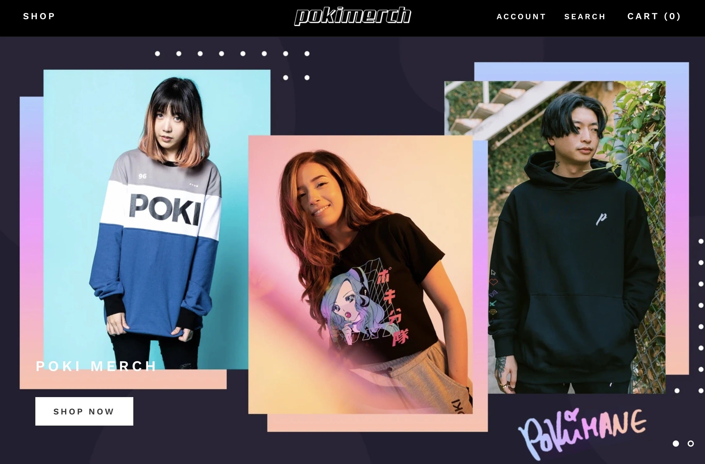 彼女は「Poki Merch」と名付けたオリジナルブランドのアパレルをShopifyで構築したネットショップで販売しています。
