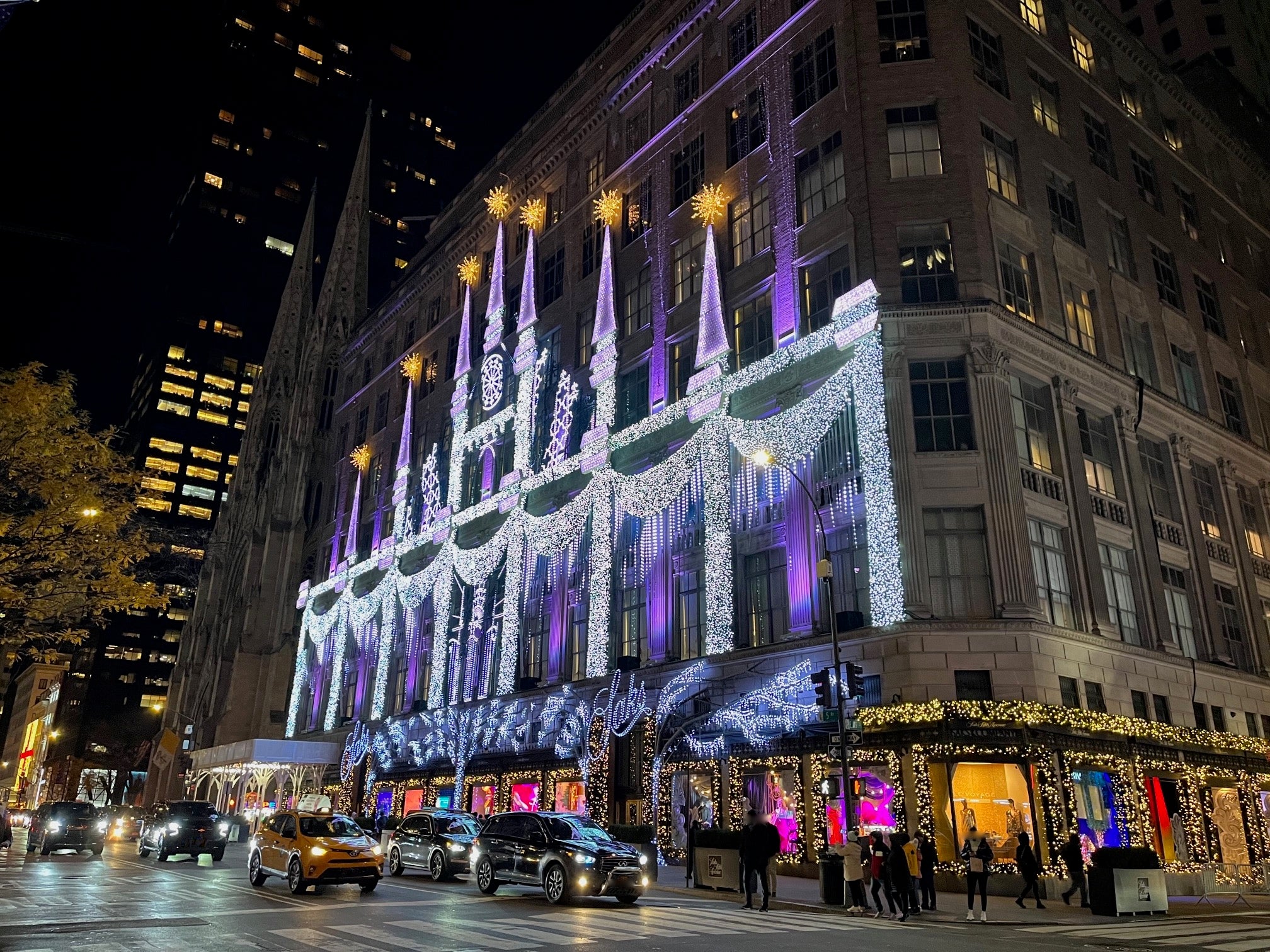 大手デパート「サックスフィフスアベニュー」の恒例のイルミネーションにも多くの人が集まっています