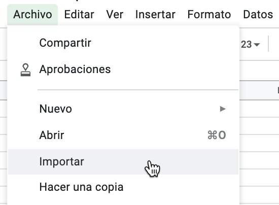 Desde la página deHoja de cálculo sin título,我有。Archivo>Importar…: