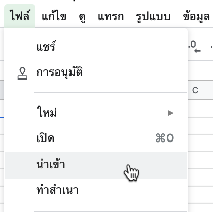 ในหน้าสเปรดชีตที่ไม่มีชื่อให้ไปที่ไฟล์>นำเข้า…