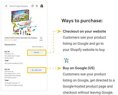 - Expand buying options on Google.With Buy on Google, you can expand your reach by enabling shoppers to purchase your products directly on Google as well as have the option to visit your online store. Plus, your products will automatically display thediscountsyou have on your online store on Google so they can check out with a discounted rate.