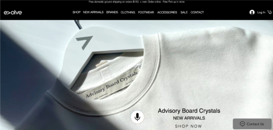 进化服饰廊是一个用Wix欧宝体育百家乐构建的电子商务网站的例子。该网站以大型多媒体视觉效果为特色,语音搜索,即时聊天.