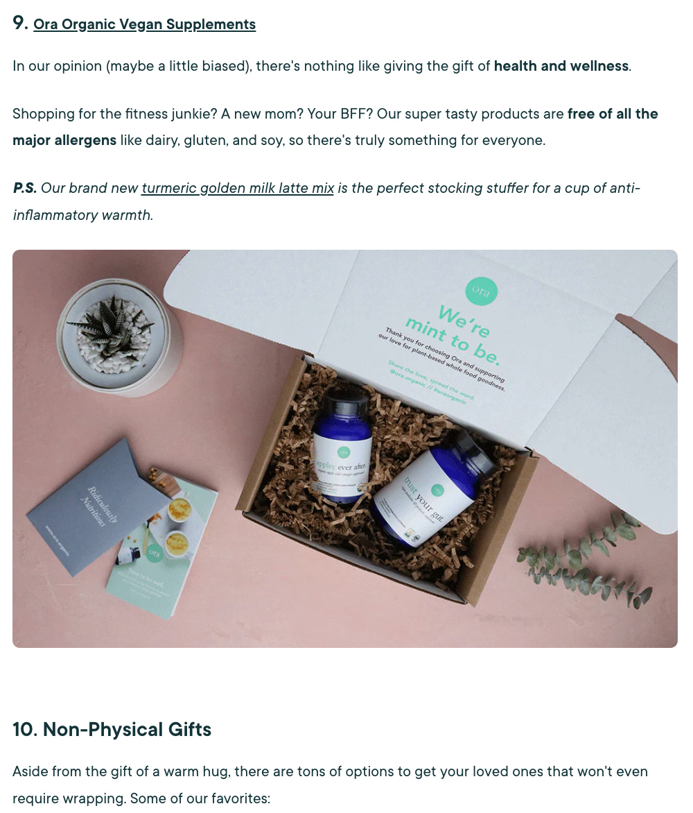 Ora Organichas a diverse range of recommendations inits sustainable holiday gift guide blog post.