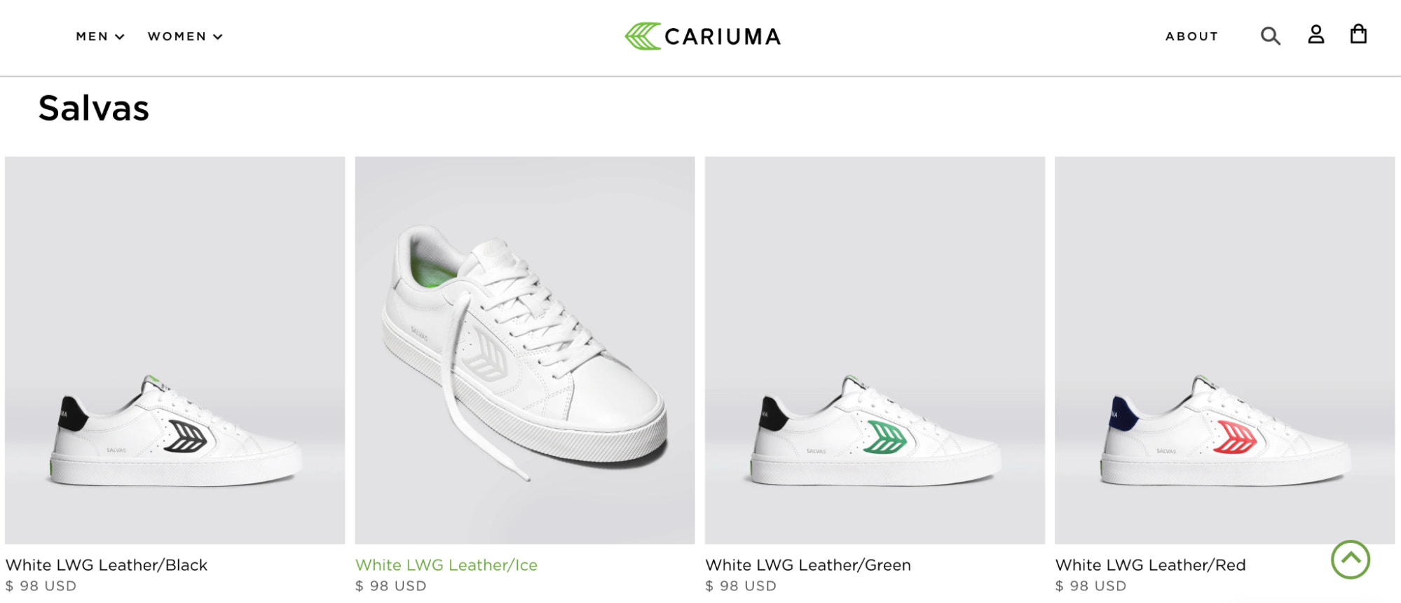 Notice how the shop page forINEZshows its footwear with the same crop and background. This makes for a clean and approachable shopping experience that lets customers quickly compare different products at a glance.