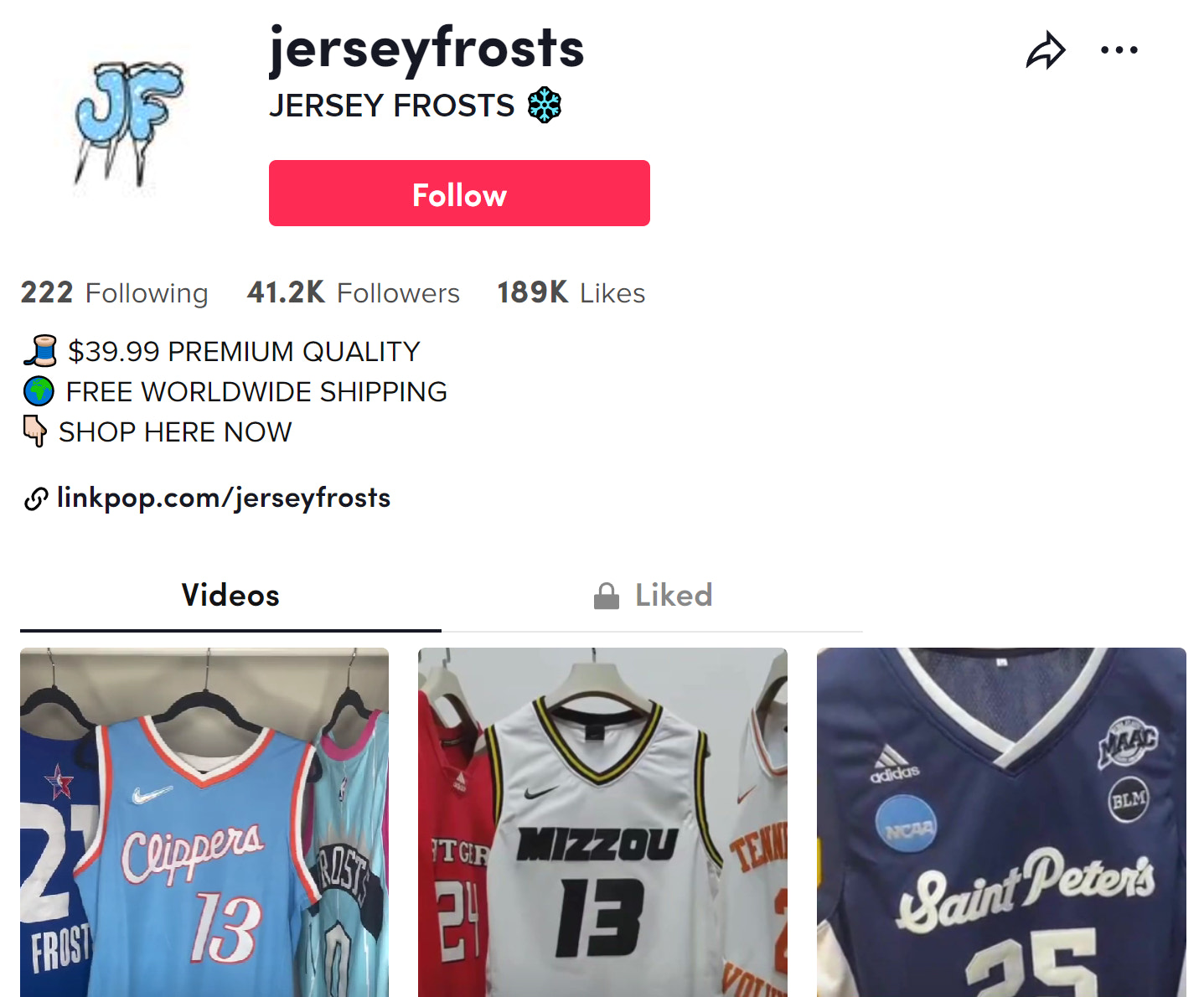 在这个例子中,你可以看到Shopify商店泽霜冻在其TikTok简介中使用Linkpop。