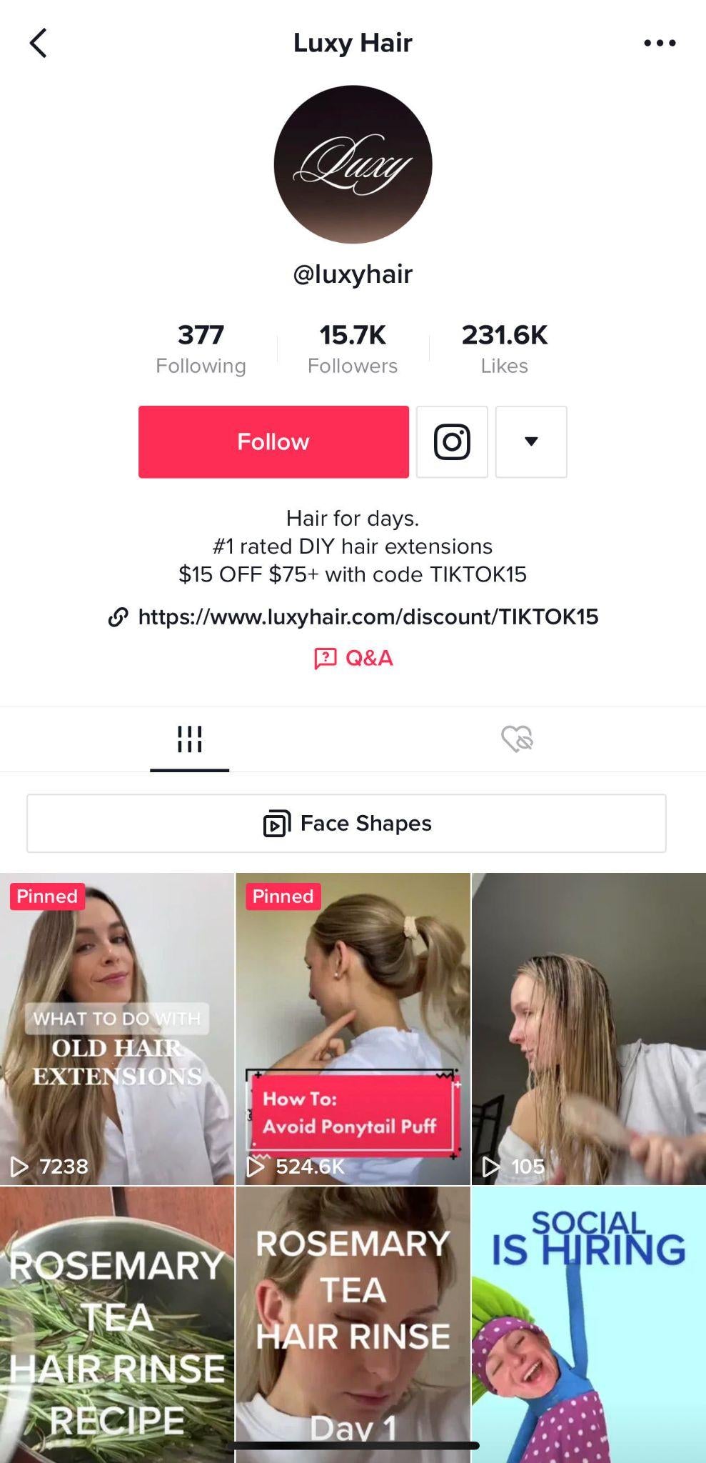 头发教程在TikTok上很受欢迎。Luxy头发已经真正融入进来,用简短有趣的视频来吸引观众,展示如何创造简单的发型。