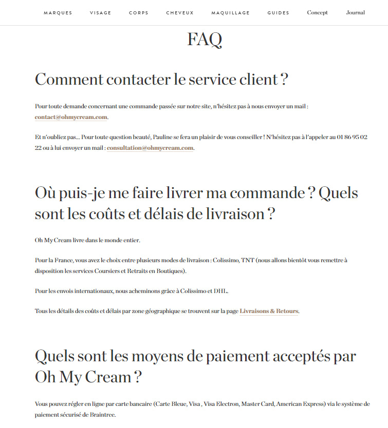 La boutique OH MY CREAM organise les questions les plus fréquemment posées par les clients afin que les réponses soient faciles à trouver.