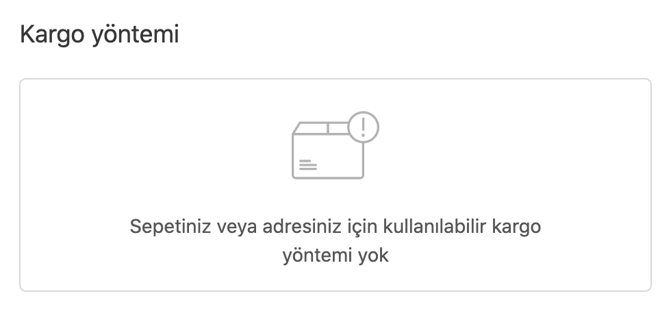 Kargo bölgelerinizde yer almayan bir bölgeye ait Kargo address giren m teriler, bölgeleri i in herhangi bir Kargo cretinin kullanılamadığını belirten bir bildirim alır: