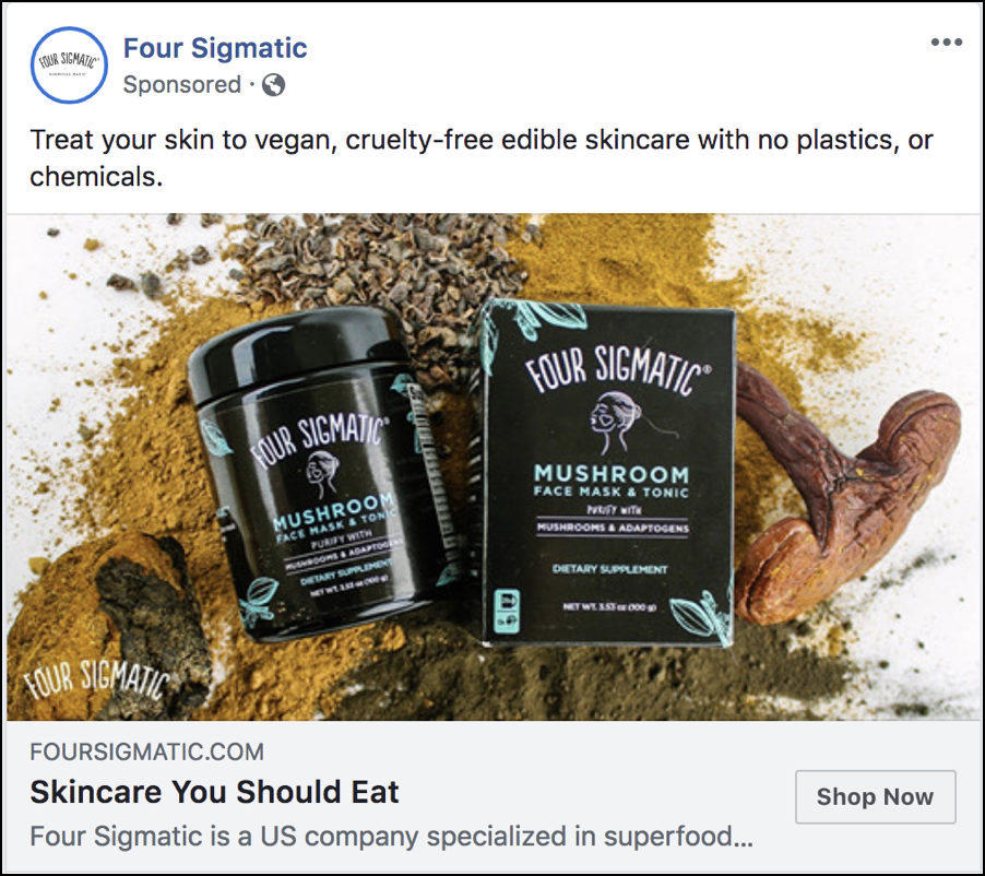 让我们看一看我在这里填写。我的年代tarted with the review stars, the emoji stars, I found this to be a really great way to capture people's attention. I go then right into the customer testimonial and then an ownership benefit statement, enjoy softer smoother skin every time you remove your makeup with Boom Clean. And finally a link call to action right to the product page. Underneath that and you can see over here on the right side of the screen, you can see my image, really colorful backdrop nice product image that pops right out and a text overlay that really grabs your attention.