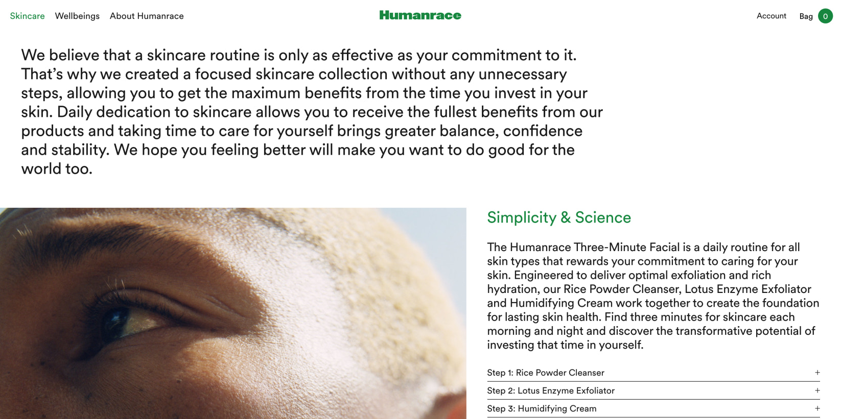 Es geht nicht nur um die Produkte. Es geht auch um Menschen und Erfahrungen. Wenn man beispielsweise auf unsere Website geht, kann man nicht nur Hautpflegeprodukte kaufen. Es gibt auch andere Dinge für die Besucher.