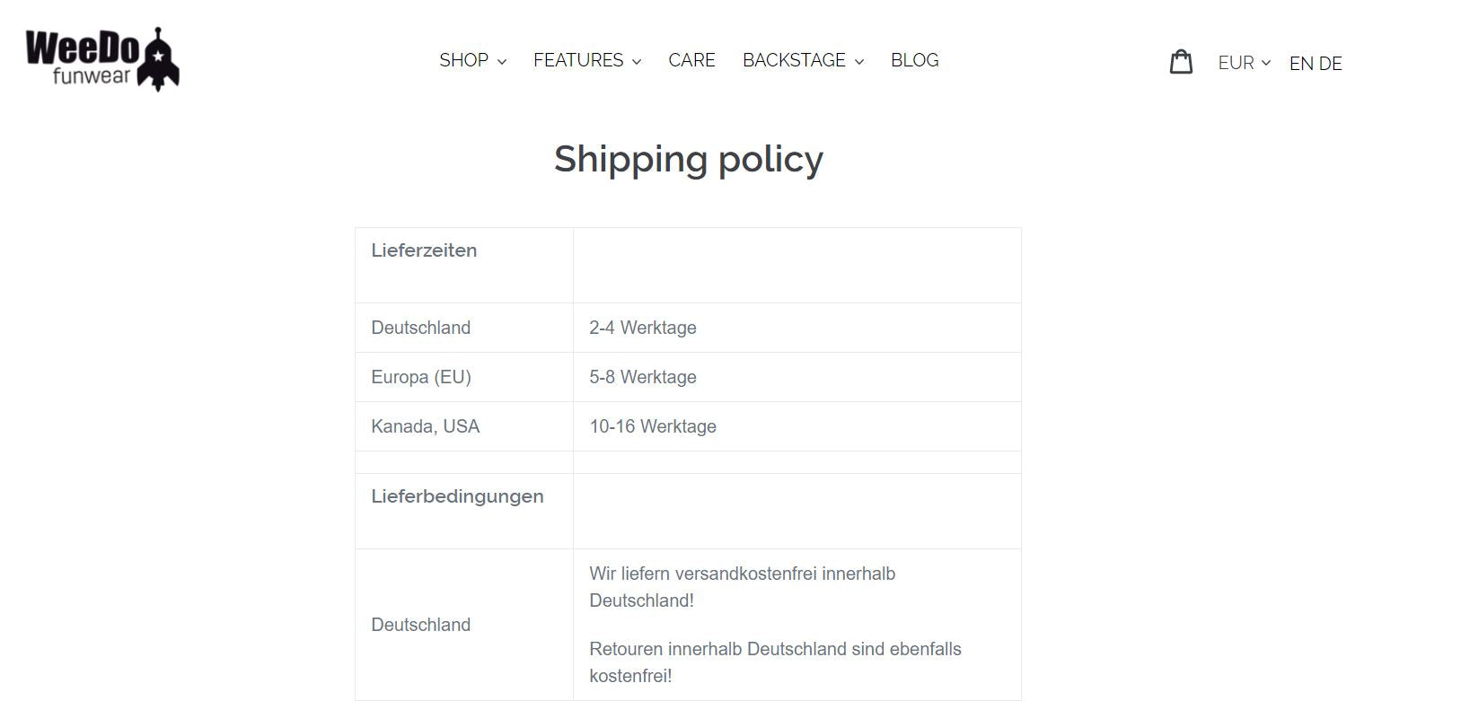 Ganz gleich, wofür du dich am Ende auch entscheidest, das Allerwichtigste ist die Transparenz. Denn das einmütige Ergebnis aller Untersuchungen ist, dass Verbraucher beim Onlineshopping nichts mehr fürchten, als versteckte Kosten.Kommuniziere你Versandbedingungen哒永远möglichst klar und sichtbar. Vermeide es um jeden Preis, Preisaufschläge und -abzüge erst beim finalen Checkout anzuzeigen. Im Idealfall ist für deine Kunden immer erkennbar, wie viel sie momentan zu zahlen haben.