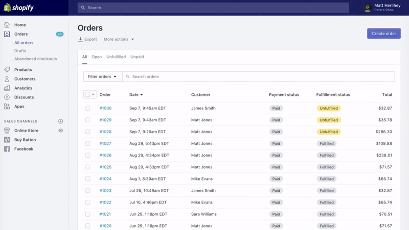 Shopify Shippingmakes it easier and faster to fulfill orders, solving manycommon shipping problems. You can buy shipping labels directly in Shopify, print multiple labels at a time, and get orders out the door quickly.