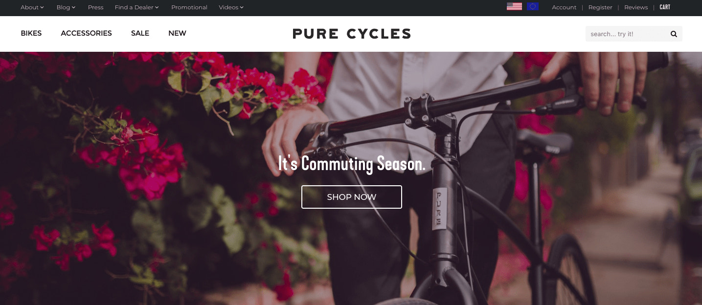 This style of above-the-fold imagery often blends together a single, powerful image, direct copy, and a call to action. It works best for merchants that want to focus on a leading offer above the fold, such as a limited time sale, a flagship product, or a seasonal collection.